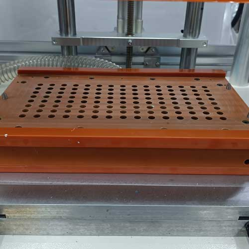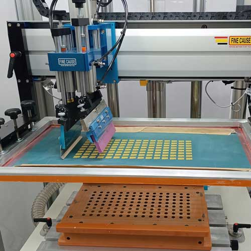 FA-400TSN-KY 是結合標準網印機與客製化吸風裝置、防塵外罩及專用治具,滿足客戶於 Micro SD卡的印刷需求。透過治具的定位與手動翻轉操作,讓SD卡印刷更穩定、更便利。
